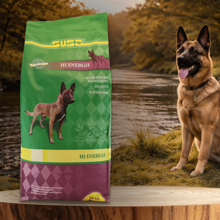 SUSA HI Energie este o hrană completă cu conținut ridicat de proteine și grăsimi, recomandată câinilor de serviciu și de lucru, câinilor cu activitate fizică intensă, precum și cățelelor gestante și care alăptează. Formulată cu 20% carne de pasăre ca sursă principală de proteine, asigură o digestibilitate excelentă chiar și în condiții de efort susținut. Crochetele extrudate crocante oferă o nutriție completă și echilibrată, susținând performanța, rezistența și recuperarea musculară. Formula este completată cu condroitină și glucozamină pentru sănătatea articulațiilor.