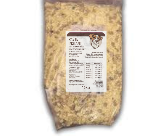 Paste instant cu carne de vita deshidratata si orez expandat pentru câini ! Fara fierbere.
